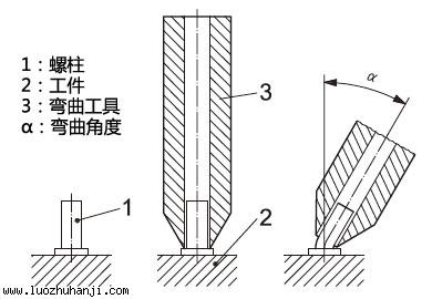 對儲能式螺柱焊的焊接強度要求,只需將螺柱彎曲一個30°夾角(α = 30°)而不脫落,即可證明滿足強度要求;